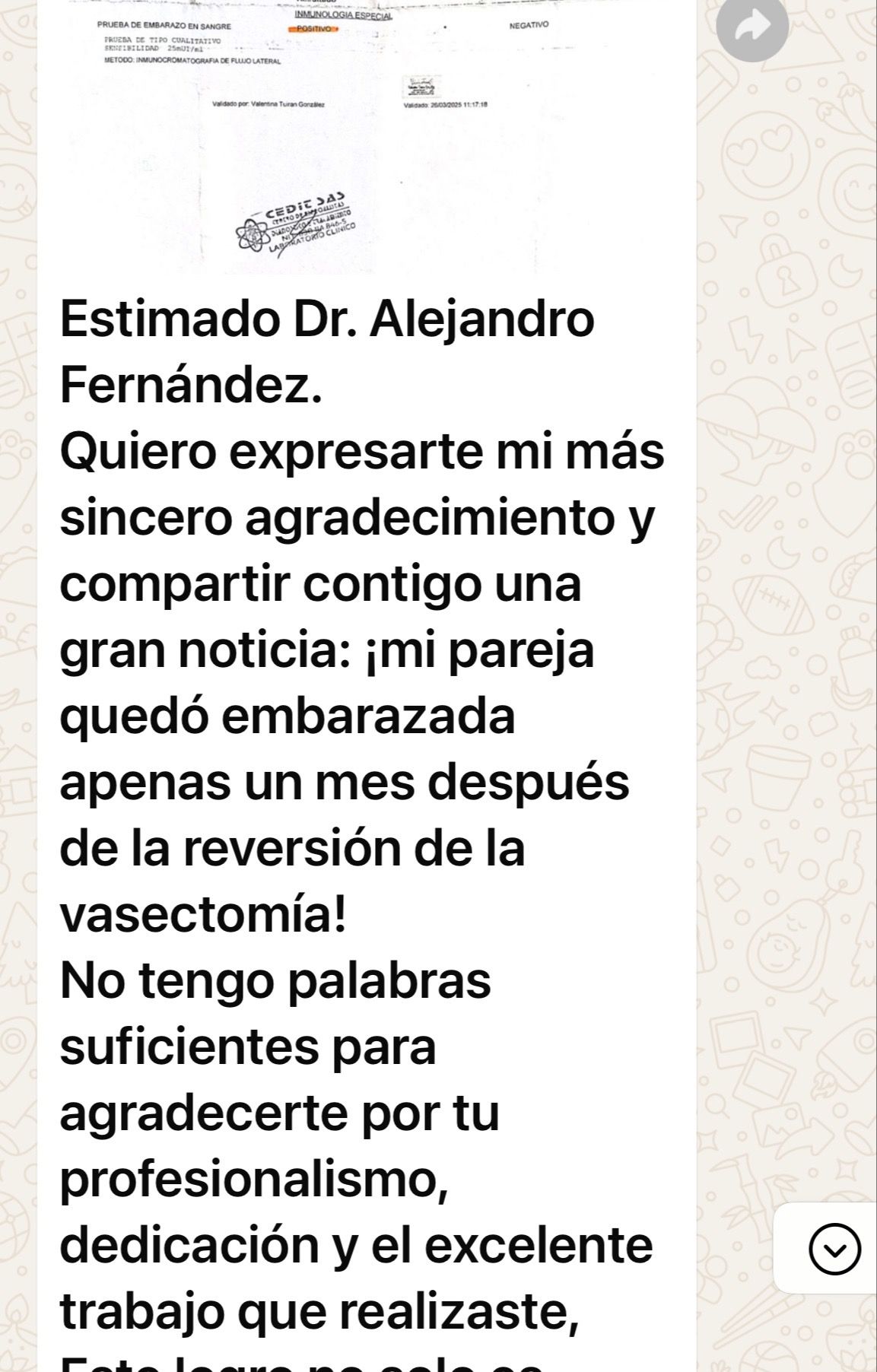 Si estás considerando la reversión de vasectomía, me encantaría ayudarte a dar el siguiente paso hacia tu sueño de ser padre.